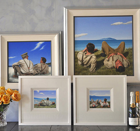 The below artworks are the first in a new series entitled TRAVELOGUE. Each painting is exploring the theme of travel and the captivating and unique experiences that occur while visiting foreign countries. Travel is a subject that has informed periods of Watson's art throughout his forty year career. With an extensively catalogued reference library of photography taken by the artist himself, we can expect to be transported into wonderful dreamscapes spanning the globe. First stop - Greece.